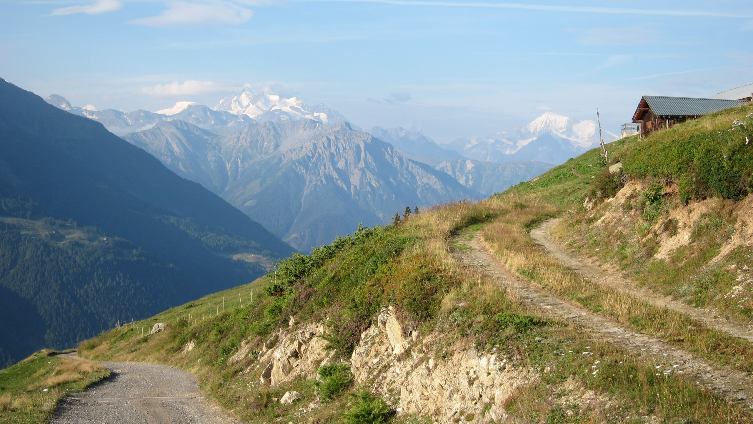 Es folgte direkt ein ca 1,5 stündiger, stetiger Antieg, der in 13 Kehren bis zur Fiescheralp hinauf führte. Der größte Anstieg des Tages, er betrug 1200hm mit durchschnittlich 10% Steigung. Insgesamt kam er mir aber etwas flacher vor wie auf der Gegenseite zum Breithorn hoch.