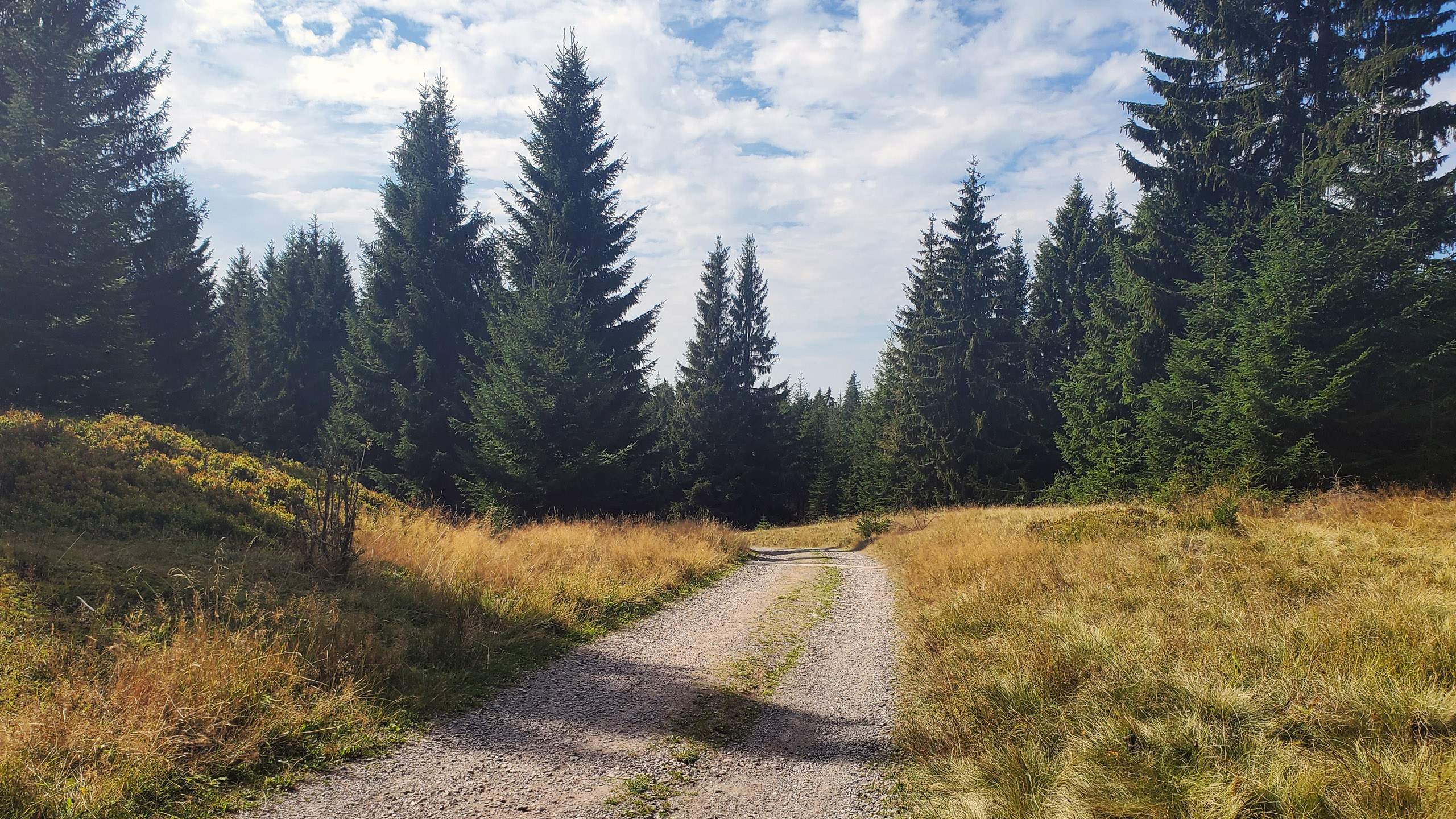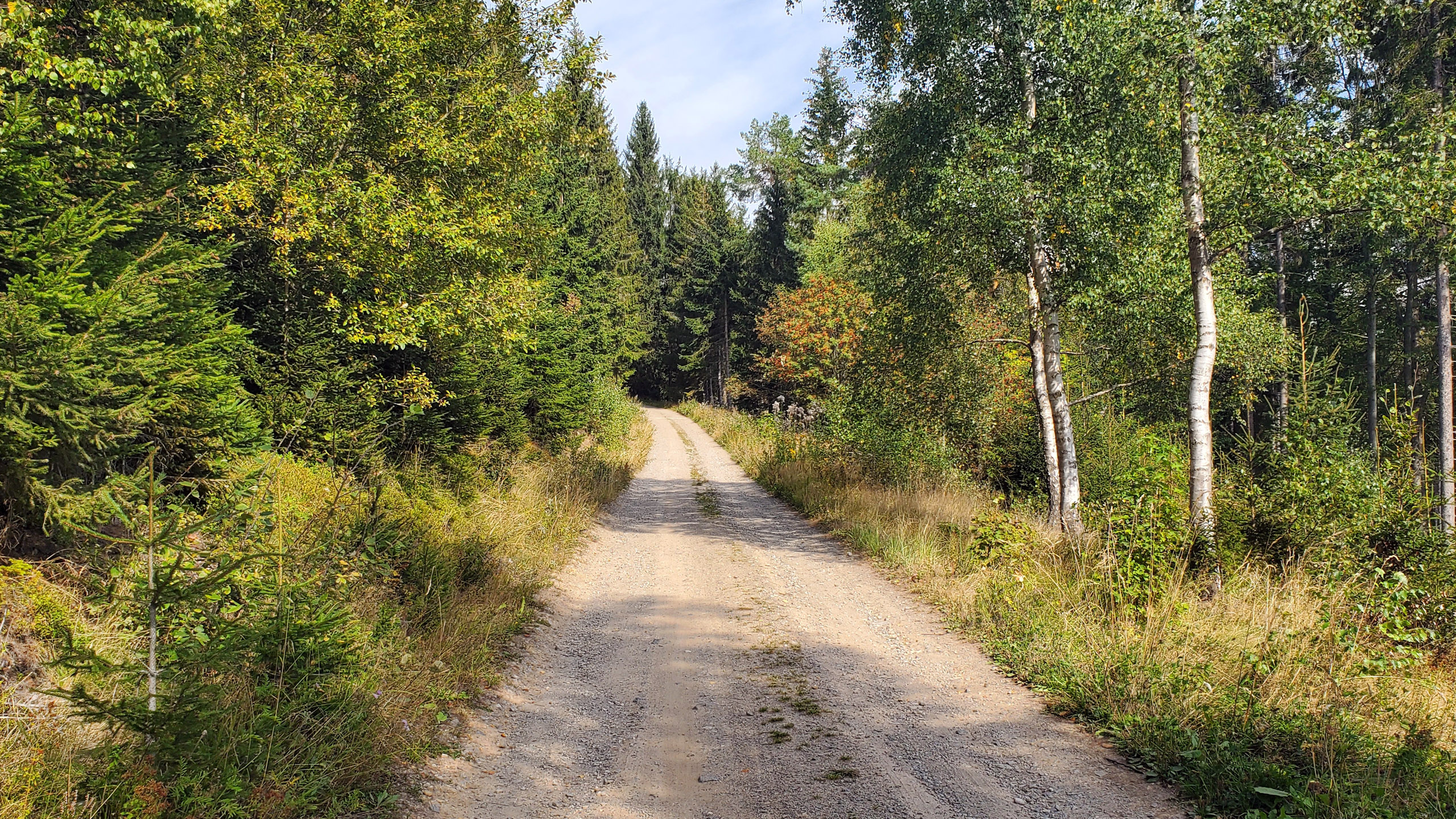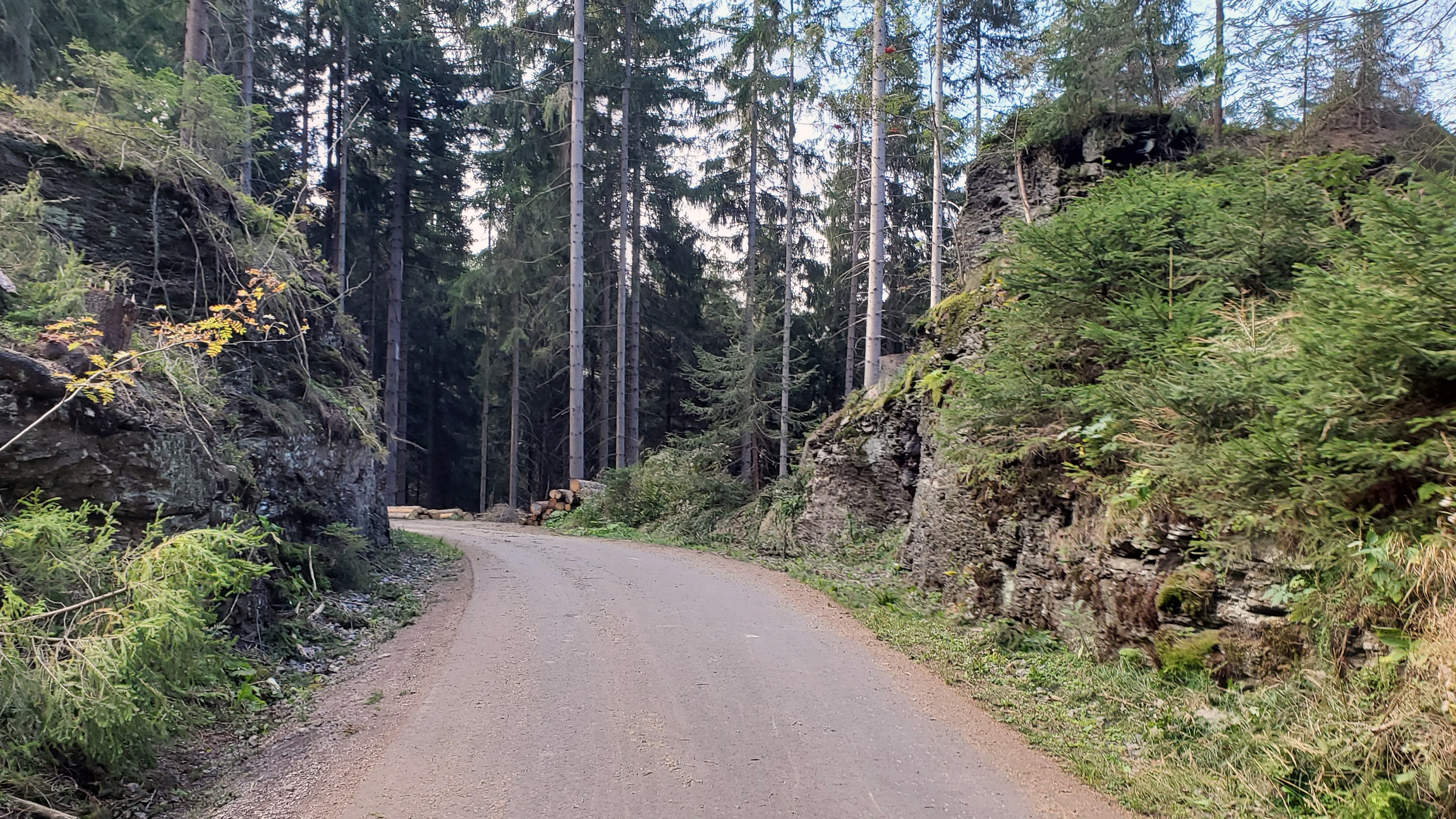 Vom Blatensky vrch ging es in leichter Neigung 7km bergab, teilweise über Waldwege, teilweise über Teerstraßen.