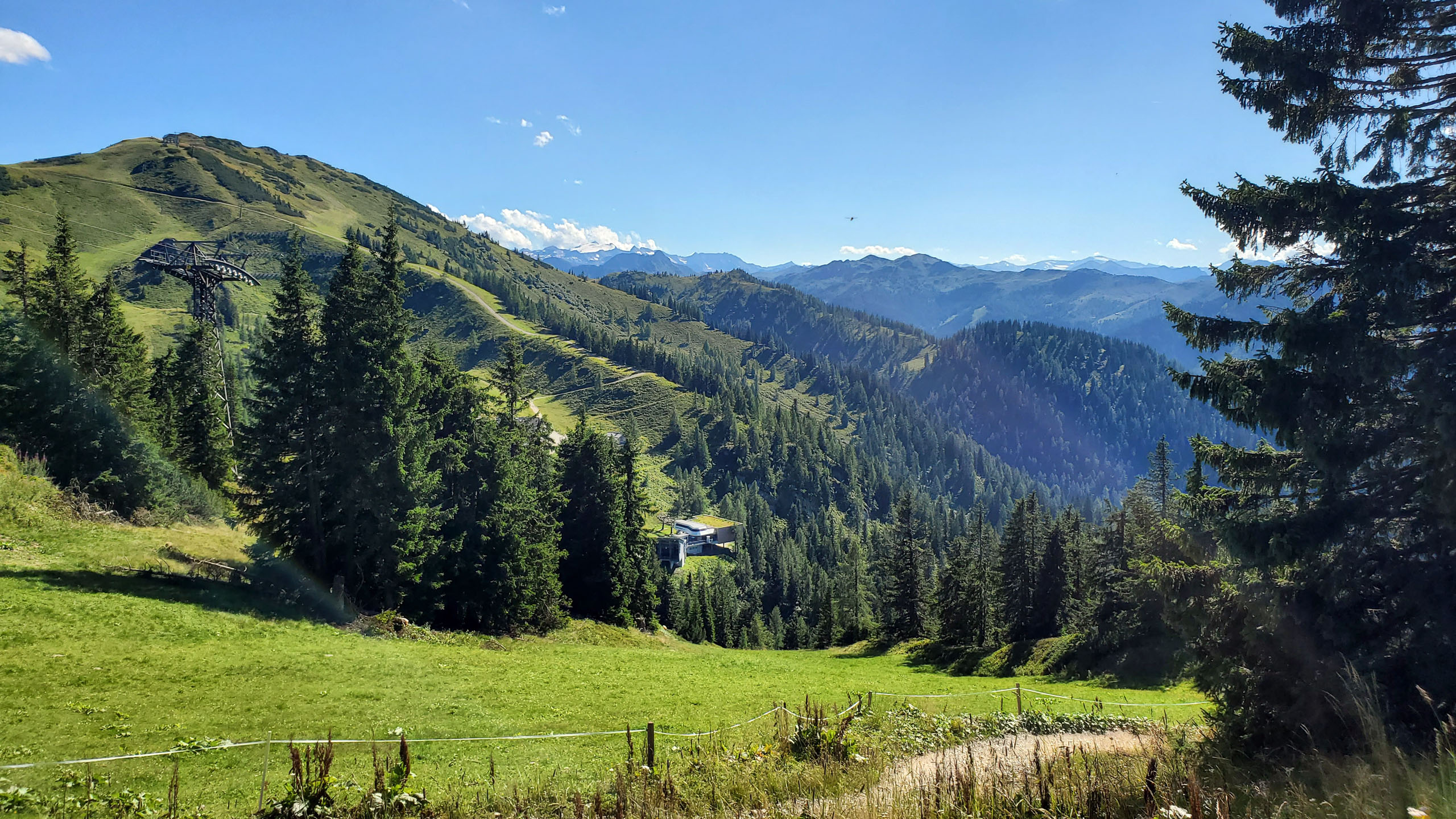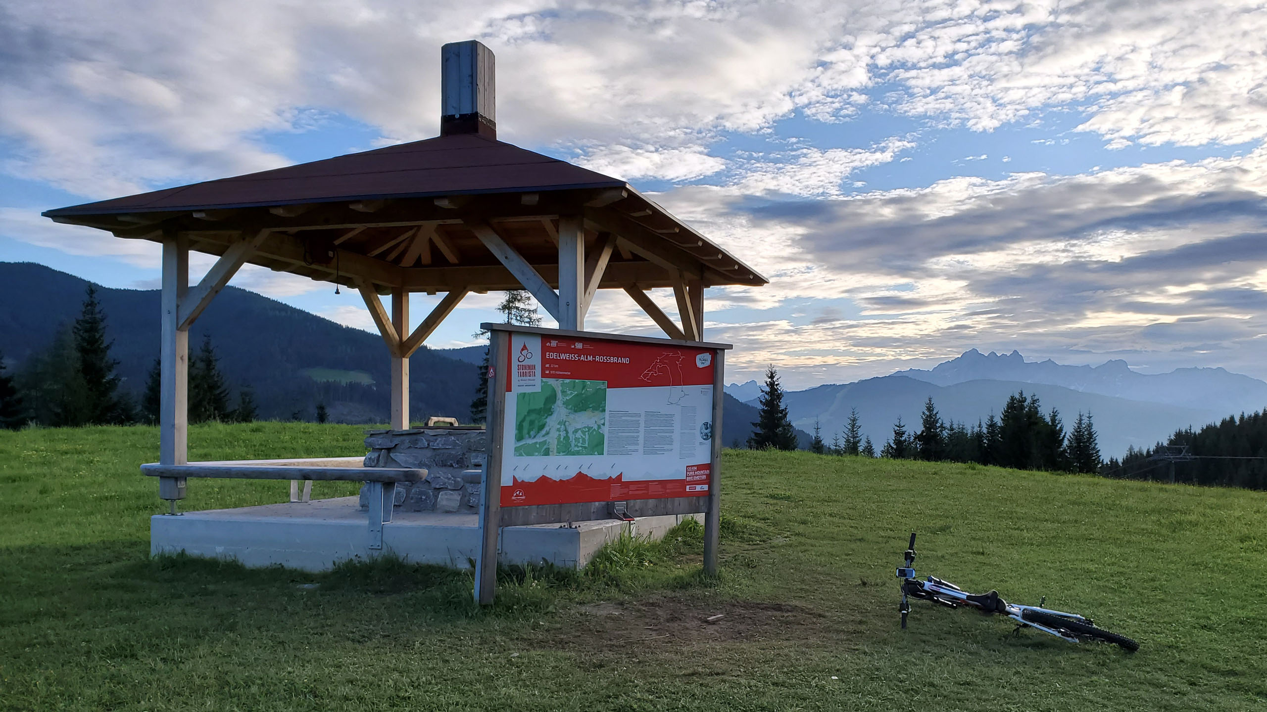 Die Stempelstelle liegt in der Nähe der Gondelstation “Flying Mozart” mit einem schönen Ausblick auf die umliegenden Berge. Das Tagesziel war nun erreicht, die Abfahrt vom Gießenkar führt durch den Bikepark Wagrain. Das erste Stück vom Bikepark habe ich auf der ausgeschilderten Umleitung umfahren, das letzte Stück ging dann durch den Bikepark.